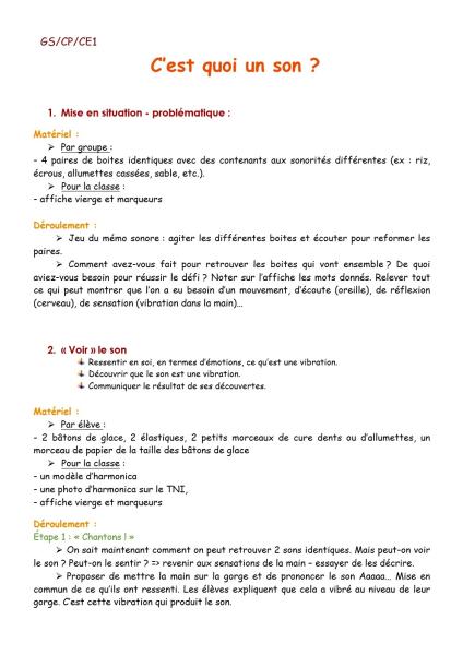Page 1 du PDF c'est quoi un son ?