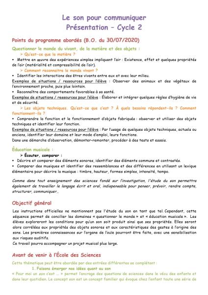 Page 1 du PDF de présentation : le son pour communiquer